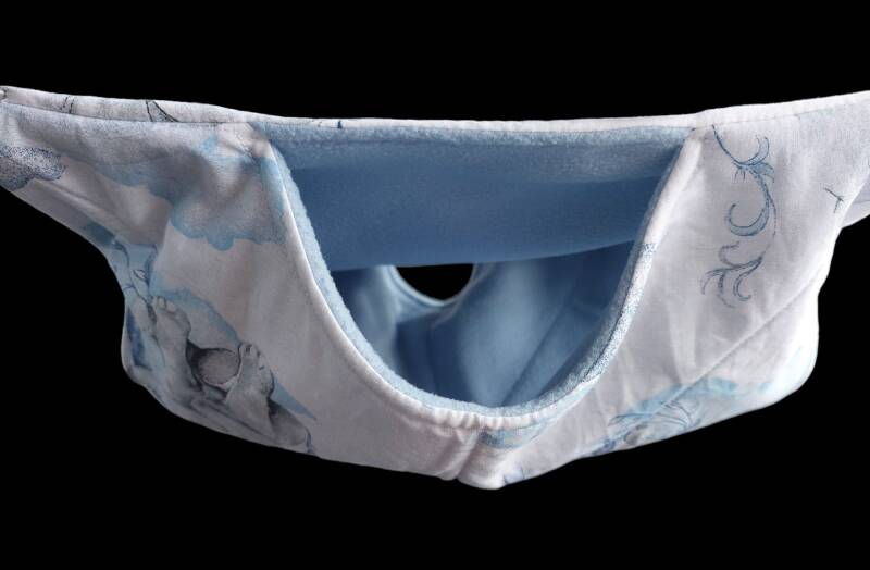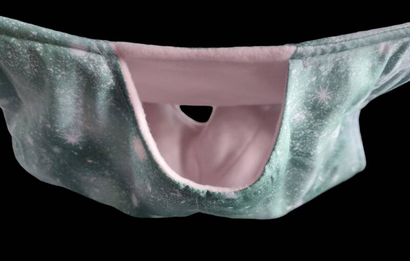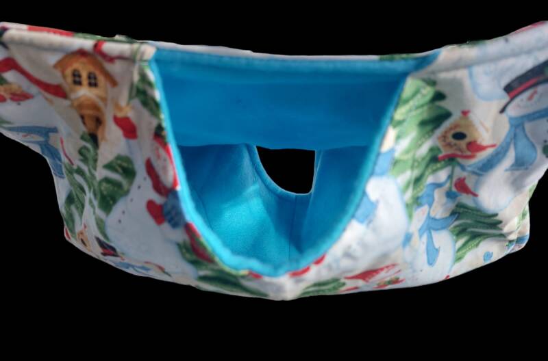 De Teabagbunker is doorgestikt, wat het knagen aan de hangmat bemoeilijkt voor de knagers, en heeft geen lusjes van stof, maar ijzeren klemmetjes om de hangmatten te bevestigen.